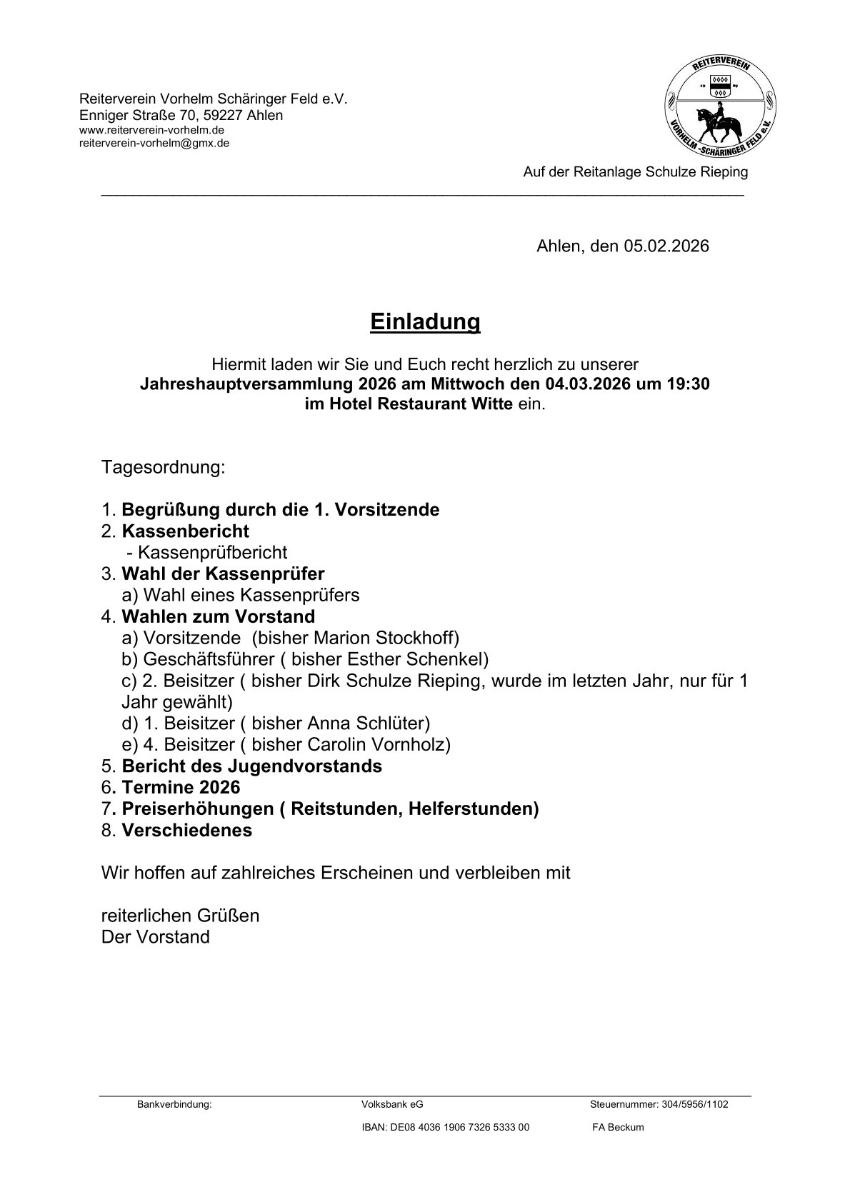 Jahreshauptversammlung / Mitgliederversammlung (04. März 2026) 16. Februar 202616. Februar 2026 von Redakteur Reiterverein Einladung als PDF
